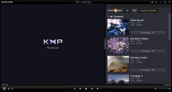 KMPlayer (KMP) es otro software de reproducción de medios conocido, que puede reproducir diferentes tipos de formatos de medios, como videos 4K UHD/HD/3D, archivos de audio regulares/sin pérdidas y DVD. Proporciona diferentes versiones por separado para dispositivos Windows, Mac y iOS/Android. Puedes elegir cualquiera de ellos según tu dispositivo. Puede configurar libremente bibliotecas de películas y música para obtener una fantástica experiencia de reproducción multimedia.
