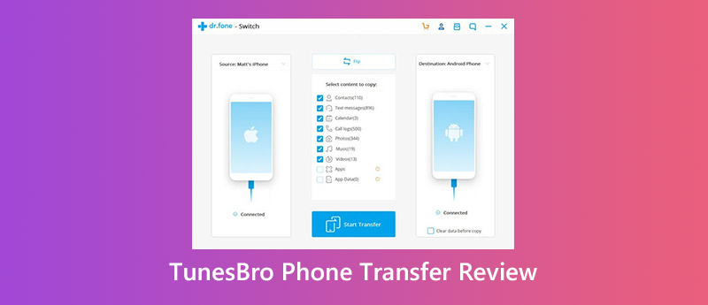 Según estadísticas recientes, Android es el sistema operativo más utilizado; sin embargo, mucha gente prefiere iOS. Desafortunadamente, no puede obtener los beneficios de los dos sistemas al mismo tiempo. Tiene sentido que cada vez más usuarios decidan usar el otro sistema al actualizar el teléfono inteligente. El gran problema es la transferencia de datos entre iPhone y dispositivo Android. Transferencia de teléfono de Tunesbro es una de las herramientas de transferencia de datos entre teléfonos inteligentes. Este artículo lo revisará en detalle.