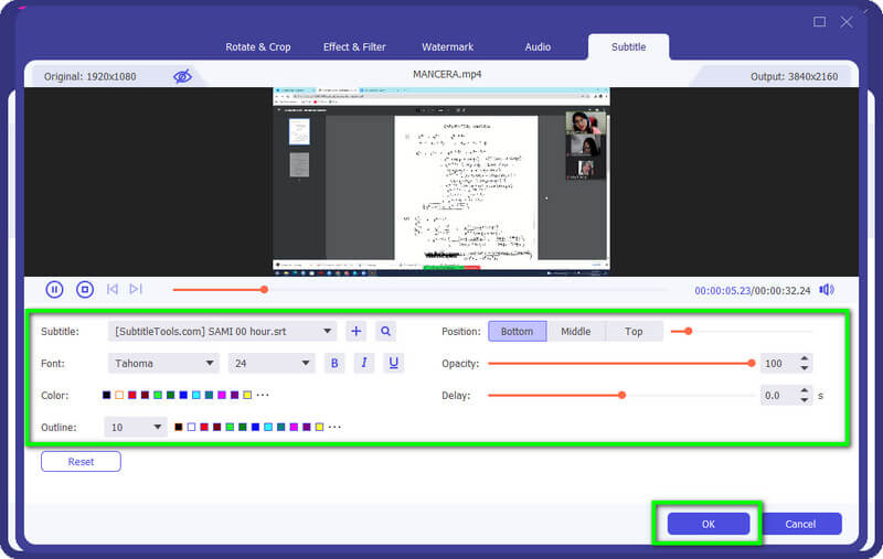 Opcional: Aparecerá un cuadro de notificación que le preguntará si desea editar el subtítulo. Si quieres, puedes tocar Editar ahora. Aquí, en la nueva ventana, edite el lugar de los subtítulos, los colores y el estilo de fuente; después de eso, haga clic OK para salvarlo.