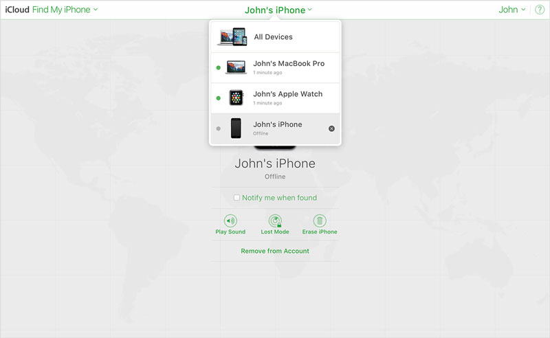 iCloud puede borrar su iPhone trabajando con la función Buscar mi iPhone incluso si el dispositivo no está en su mano. Por lo tanto, es una forma eficiente de reparar el iPhone que no se puede borrar porque está perdido o roto.