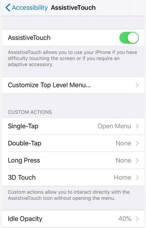 Si el reinicio forzado no puede arreglar la captura de pantalla del iPhone que no funciona, puede probar la función de asistencia del iPhone para tomar capturas de pantalla sin presionar botones.