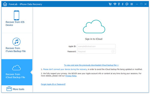 Aún así, si alguna vez usó iCloud para hacer una copia de seguridad de los contactos de iPhone, entonces aquí podría usar el tercer modo de recuperación de este programa para recuperar los contactos de iPhone perdidos o eliminados.