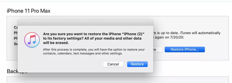 3. Luego, aparecerá una ventana emergente. Aquí sólo tienes que hacer clic en el Restaurar botón para confirmar la operación. Luego, puede restaurar su iPhone a su configuración original.