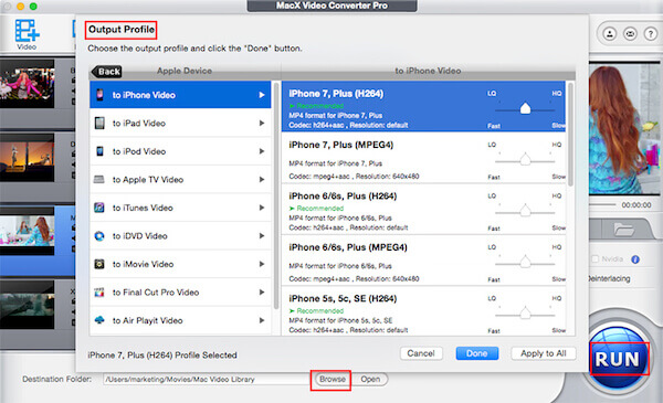 Paso 3 Ahora haga clic en el botón desplegable Perfil para elegir los formatos adecuados. Luego haga clic en Navegador para elegir la carpeta de destino.