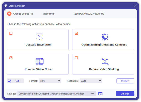Aiseesoft Video Converter Ultimate es un convertidor de video todo en uno, que permite a los usuarios convertir, descargar, mejorar y editar archivos de video y audio de manera fácil. Como resultado, puede personalizar los efectos de video RMVB y mejorar su calidad de video antes de convertir RMVB a MPEG.