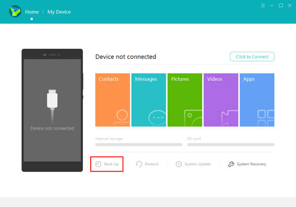Paso 3 Haga clic en "Inicio" en la interfaz principal y verá la pestaña "Copia de seguridad y restauración".