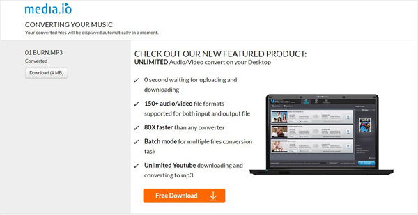 Paso 4Haga clic en el botón "Convertir" para cargar el video AVI a este convertidor de AVI a MP3 en línea. Te llevará más tiempo competir con la carga. Luego debe hacer clic en el botón "Descargar" para guardar el archivo MP3 convertido en su computadora.