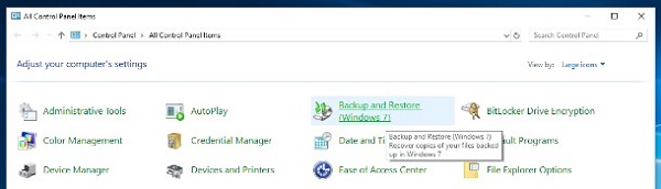 Paso 2: Luego abre Panel de Control y haga clic De seguridad y restauración para abrir la siguiente ventana.