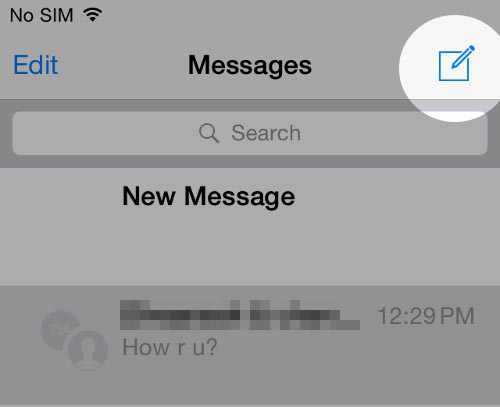 1Vaya a la aplicación "Mensajes" en iPhone y elija la opción "Redactar nuevo mensaje" en la esquina superior derecha.