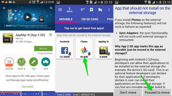 Si su teléfono Android no le brinda la función integrada para mover aplicaciones aprobadas a la tarjeta SD, también puede usar una aplicación de terceros para ayudarlo a transferir otras aplicaciones a su tarjeta SD. Hay algunas aplicaciones que puede usar, aquí nos gustaría recomendarle la mejor aplicación para pasar a la tarjeta SD llamada AppMgr III (App 2 SD), que lo ayuda a mostrar fácilmente qué aplicaciones se pueden mover a la tarjeta SD bajo el encabezado "Movible".