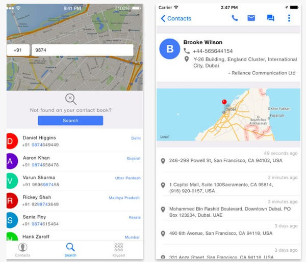Tal como lo muestra su nombre, puede usar Rastreador de ubicación de números móviles para rastrear un iPhone según los contactos. También ofrece ubicación en tiempo real mientras recupera una llamada. Lo más atractivo es que puedes rastrear un iPhone por número de teléfono gratis.