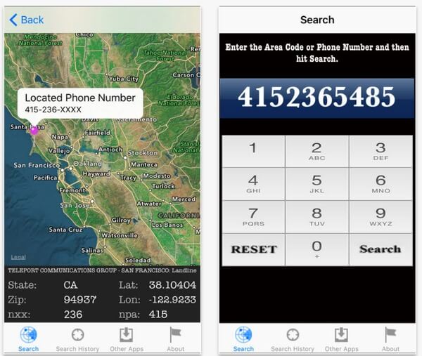 Localizador de números es la aplicación basada en iPhone que puede rastrear el iPhone de alguien buscando solo el número de teléfono. Y no importa si se ha conectado a Wi-Fi o no, puede obtener datos completos sobre códigos de área o números de teléfono completos a la velocidad del rayo.