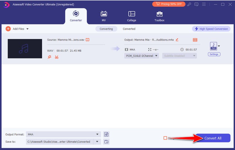 Aiseesoft Video Converter Ultimate is a potent program whose feature-rich UI makes audio conversion jobs easier. It is the best option available for smoothly converting multiple audio files, such as WAV to M4A audio. For all of your audio editing needs, It provides a robust yet user-friendly platform, perfect for video/audio. In this tutorial, we'll look at how we can convert WAV files to M4A more easily, giving you more freedom to work with audio files quickly and easily.