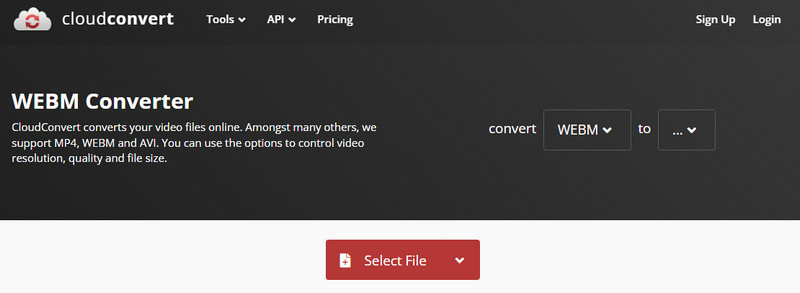 CloudConvert es un conversor de WebM a PNG que no necesita descargar, ya que está disponible en cualquier navegador web que haya descargado o preinstalado en una computadora de escritorio. Este convertidor puede convertir casi cualquier archivo en su escritorio, ya sea popular o no, como Archivo, Audio, Video, Vector, Imágenes y más. Además de eso, puede cambiar las opciones para el resultado final según sus preferencias o no. Sin embargo, existe una limitación sobre cuántas veces puede convertir el archivo. Pero si quieres probar esto, sigue los pasos indicados a continuación.