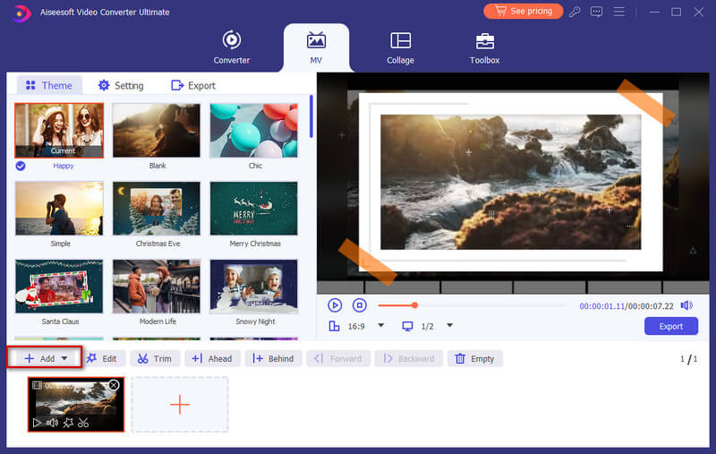 Cuando termine de editar, puede seleccionar un tema para su MV. En la sección izquierda, haga clic en el Tema pestaña y luego elija el tema deseado para su MV. Luego, el tema se aplicará al MV automáticamente y podrá obtener una vista previa del video en el reproductor.