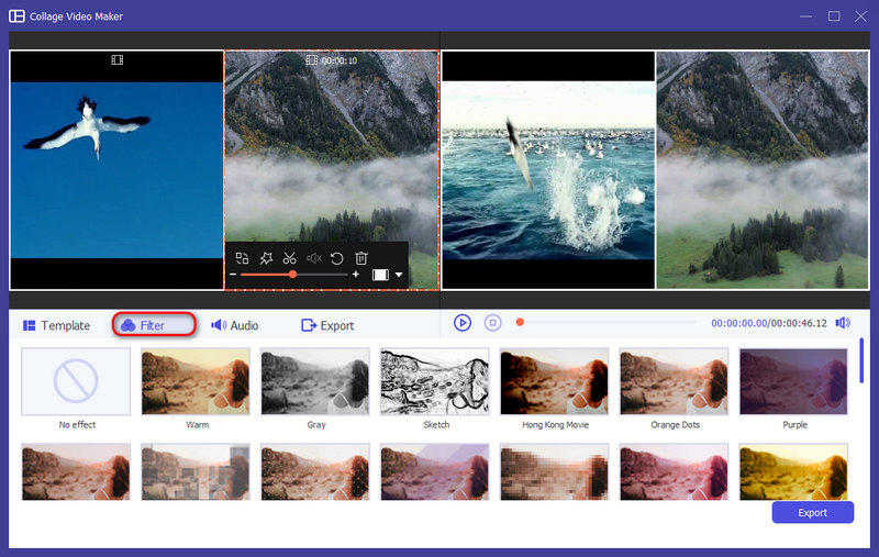 Después de editar sus clips de video, puede seleccionar un filtro para usar en función del contenido de su video yendo a la Filtrar .