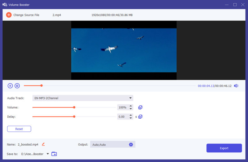 Paso 2: Si encuentra que el volumen de su video es demasiado bajo o demasiado alto, puede usar Volume Booster para ajustar el volumen. Simplemente arrastre el punto en la barra para subir o bajar el volumen según sus necesidades.